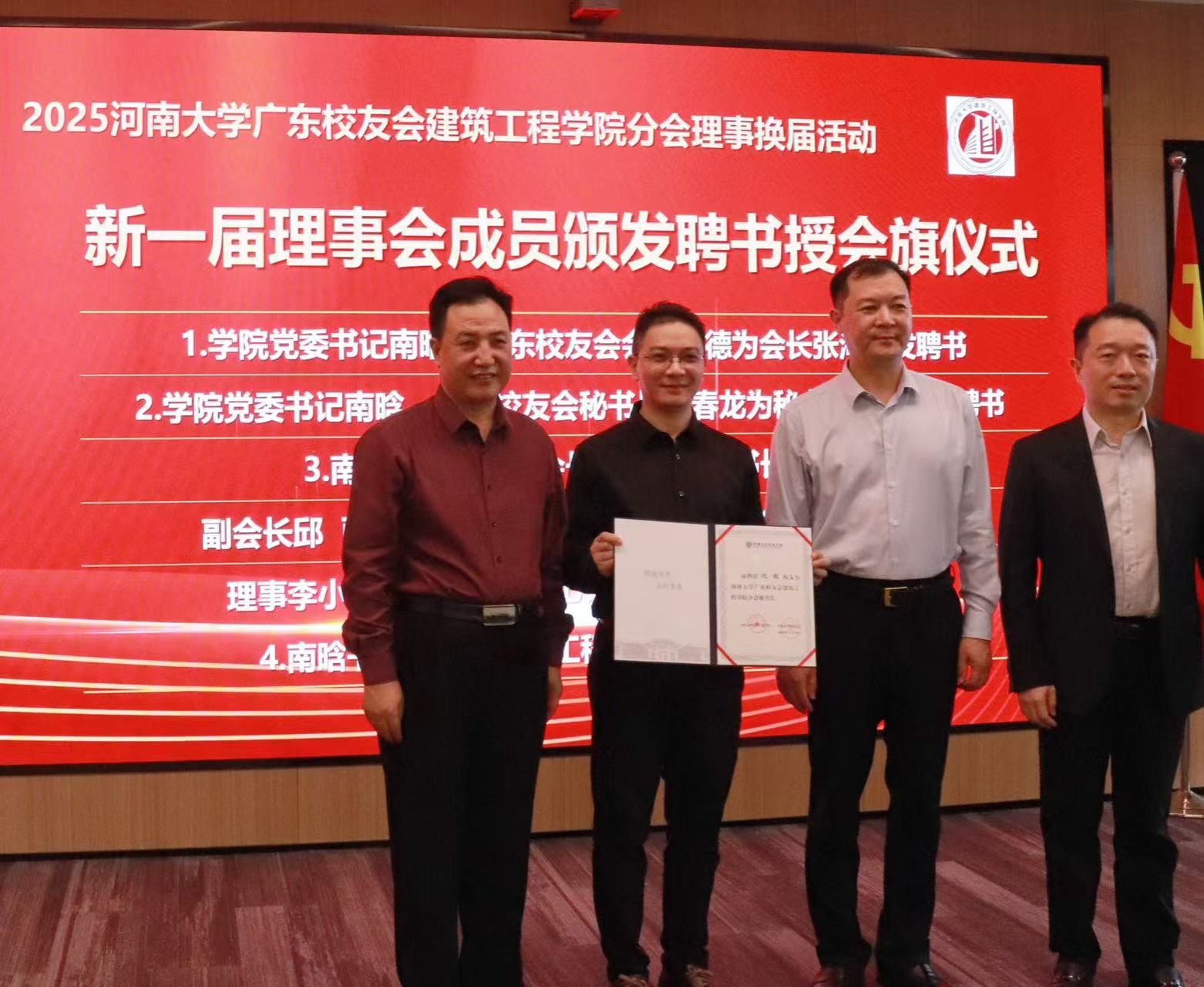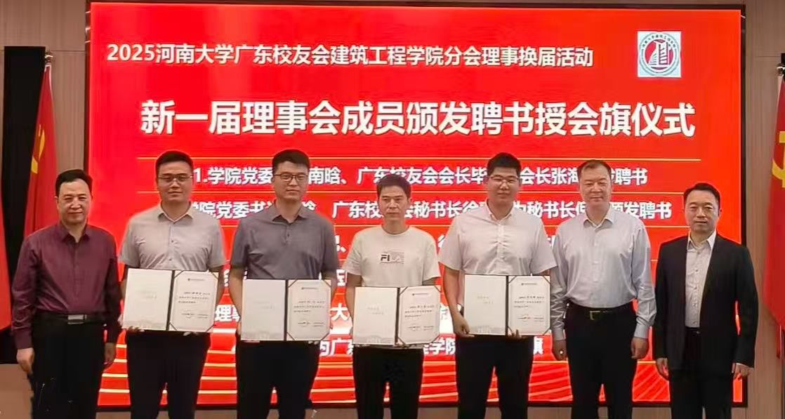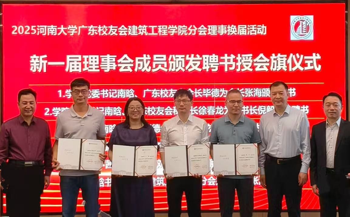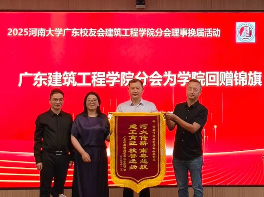 分会向母校回赠锦旗,锦旗题字为“河大传薪,南粤起航;建工育匠,校誉远扬”,以此表达广东校友建筑工程分会对母校培育之恩的诚挚谢意,以及对母校与学院未来发展的殷切祝愿。