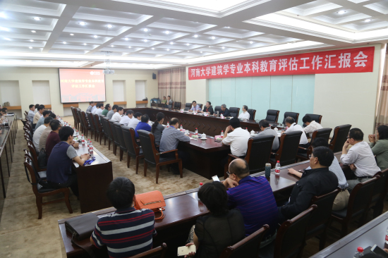建筑学专业本科教育评估工作汇报会在金明校区图书馆三楼会议室召开。评估专家组成员,校领导娄源功、赵国祥、刘志军、许绍康,校总会计师韩守富,学校相关职能部门负责人,麻豆传媒映画