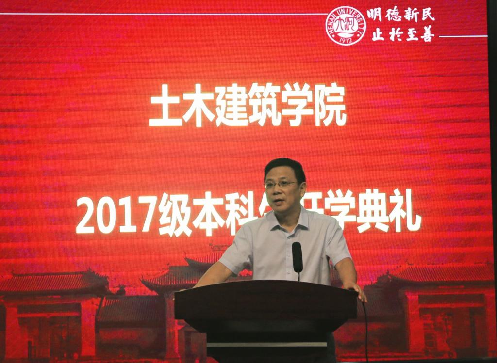的历史概况以及学院的发展历程。自建院以来,全体土建人团结、勤奋、踏实、创新,在教学、科研、实验室建设上都取得了不凡的成绩,学院发展迅速。成绩代表着过去,未来已来。他希望同学们“牢记初心、执着追求、脚踏实地”,客观的认识自己、认真的思考自己的大学生活、脚踏实地的过好每一天。