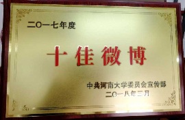 官方微信和官方微博被评为学校 “2017年度十佳微信”和“2017年度十佳微博”。