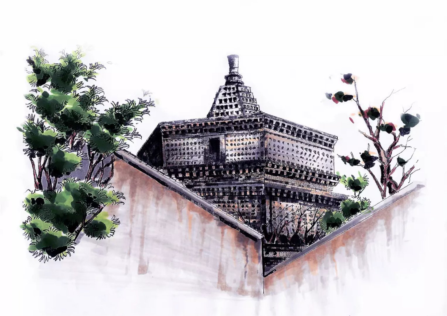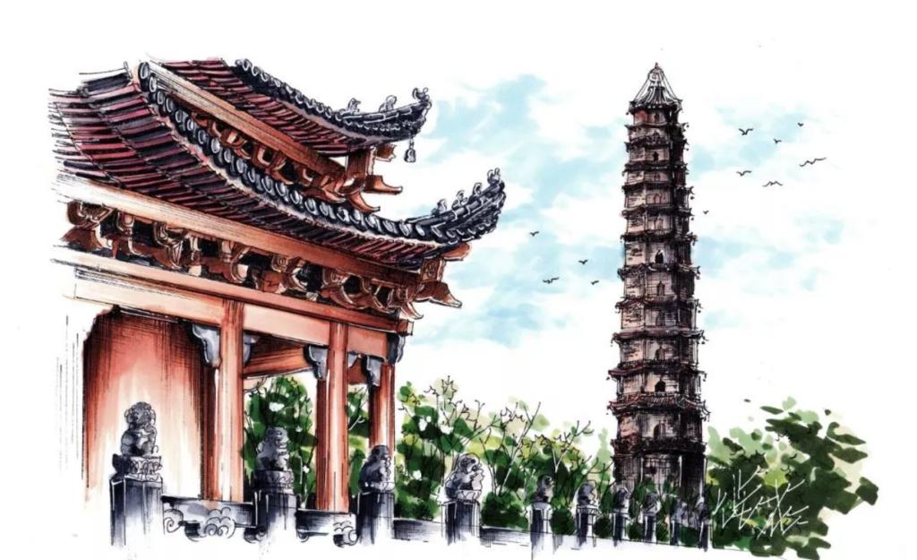 一个个熟悉的景点,经过手绘变成了精致的画作。
