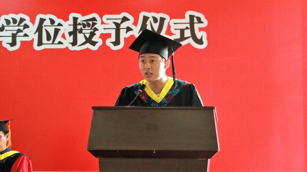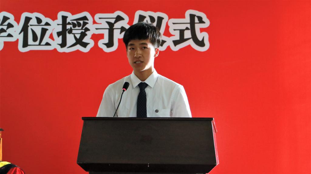 毕业生代表李慧斌同学代表全体毕业生表达了他们对母校的不舍与感激。