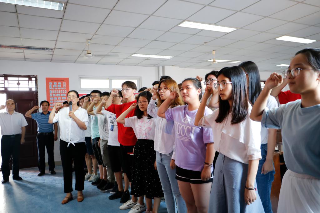全体起立,奏国歌,院党委办公室负责人魏森杰同志领誓。全体党员面向鲜红的党旗,举起右手,庄严宣誓,新发展党员接受思想洗礼,许下庄严承诺,抒发对党忠诚的决心,宣誓声音激昂有力。