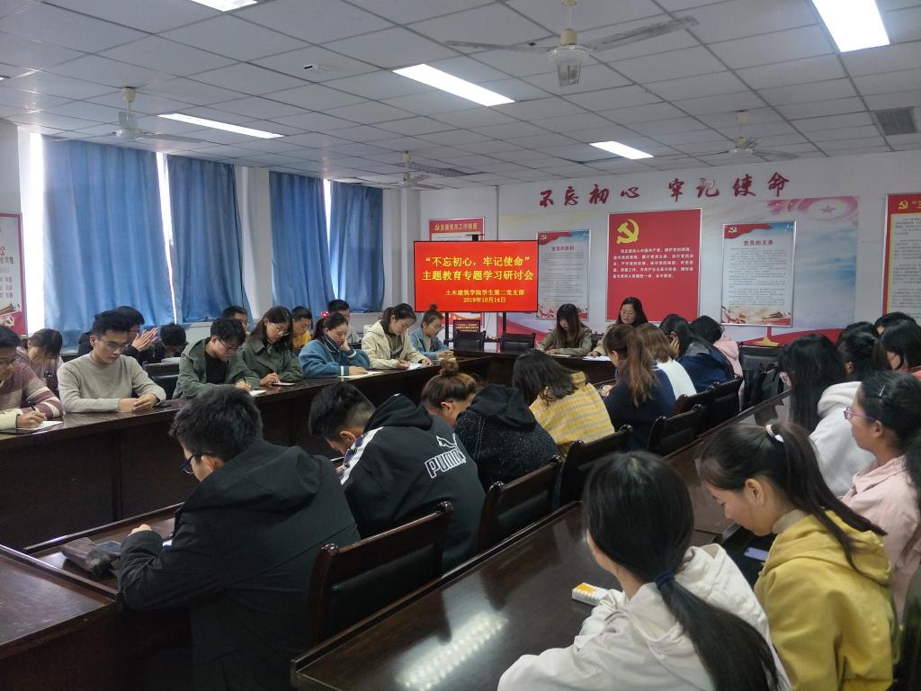 本科生第二党支部在党建活动室602举行 “不忘初心、牢记使命”主题教育专题集中学习研讨会,支部书记、全体党员和18级城规班全体团员参加。