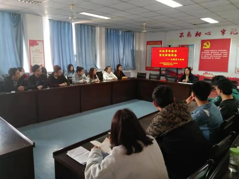 本科生第一党支部在党建活动室602举行“弘扬革命精神,坚定理想信念”主题党日活动。支部全体党员和入党积极分子参加。