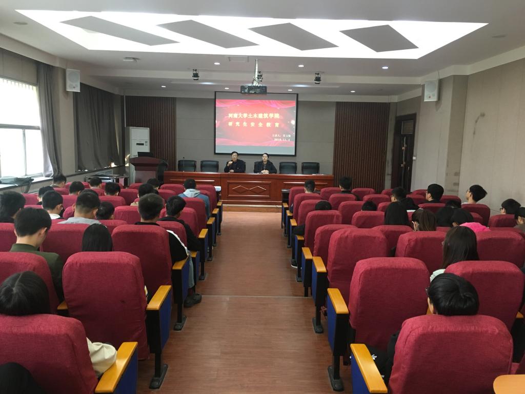 在结构实验室二楼报告厅举办了研究生安全教育和心理健康教育,院党委副书记党玉敬老师和研究生辅导员徐贵香老师做了讲话,全体研究生参加了会议。