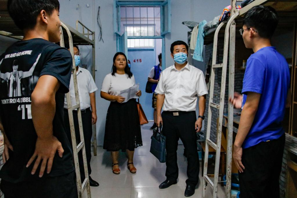 走访中,学院领导与2020级新生展开亲切的交谈,希望同学们要尽快的熟悉并适应现在的生活,认真学习,努力奋斗,在大学里度过一段充实而美好的时光,为自己的人生上交一份满意的答卷。院长岳建伟表示,大家在学校的生活中有什么问题和困扰,一定要及时和学院或辅导员汇报,学院一定会为同学们解决问题。在与新生聊天过程中,院领导态度和蔼可亲,学生对学院领导的亲切关怀表示感激。