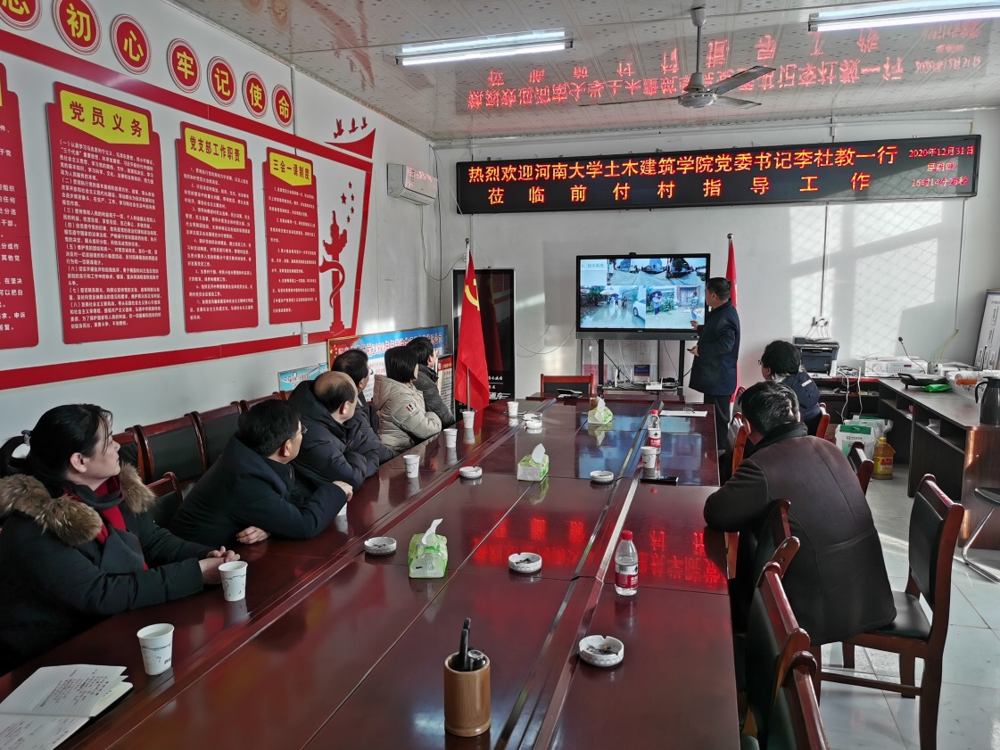 党委书记李社教、党委副书记党玉敬、副院长郭保来和教工各党支部书记等一行赴通许县竖岗镇前付村调研脱贫攻坚工作,省派驻村第一书记历史文化学院副院长刘会宾等陪同调研。