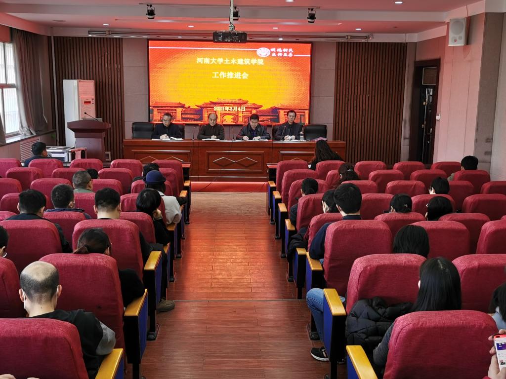 在结构实验室二楼学术报告厅召开新学期工作推进会,学院领导班子、全体教职工参加会议。会议由学院党委书记李社教主持。