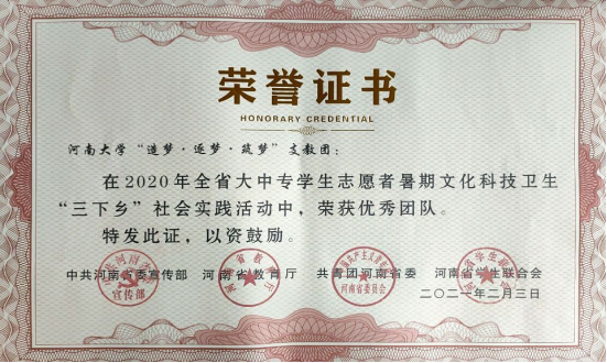 “造梦·逐梦·筑梦”支教团荣获河南省“优秀团队”称号。