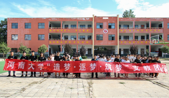 “造梦·逐梦·筑梦”支教团成立于2018年。每年夏季,支教团便会来到兰考县堌阳四中,开展为期半个月的支教活动。支教团成员为丰富学生们的课余生活,寓教于乐,在学校开办了美术课、音乐课、太极等课程,同学们参与积极性非常高。为了对中学生进行价值引领,支教老师们还开展了《分享焦裕禄故事,学习焦裕禄精神》主题班会,进一步增强了学生对焦裕禄精神的认知和学习。课余时间,同学们对堌阳镇的居民生活水平以及考察堌阳镇几所小学的图书馆藏情况和小学生阅读状况进行了调研。