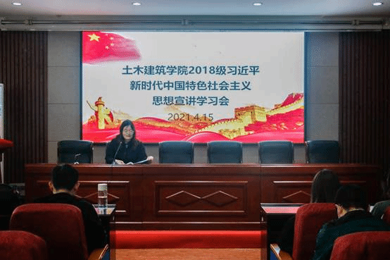 2018级本科生在结构实验楼二楼报告厅举行了习近平新时代中国特色社会主义思想宣讲学习会,辅导员魏森杰及2018级251名本科生参加了此次宣讲学习会。