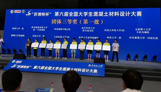 7月14日,“苏博特杯”第六届全国大学生混凝土材料设计大赛在武汉理工大学隆重举行,大赛包括两项赛事:水泥基材料创意作品比赛和混凝土材料设计及操作技能比赛。由蔡基伟和许鸽龙老师指导制作的“砼心铜面”篆印获水泥基材料创意作品一等奖;许鸽龙老师指导的麻豆传媒映画