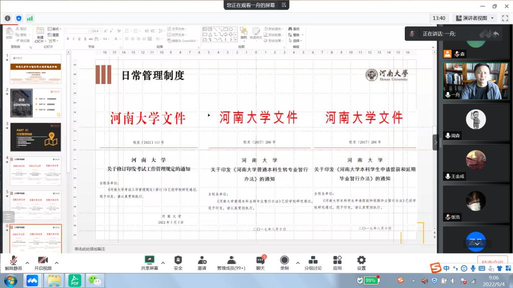 9月4日上午是“规章制度专题”,学院党委副书记赵艳忠按照“日常管理类制度”“奖励类制度”“处罚类制度”,带领同学们,重点学习了《麻豆传媒映画