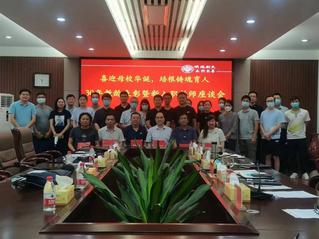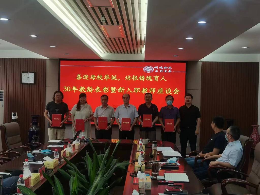 举办30年教龄表彰暨新入职教师座谈会,学院领导班子、受表彰教师和2020年以来新入职教师参与了本次活动。座谈会由学院党委副书记赵艳忠主持。