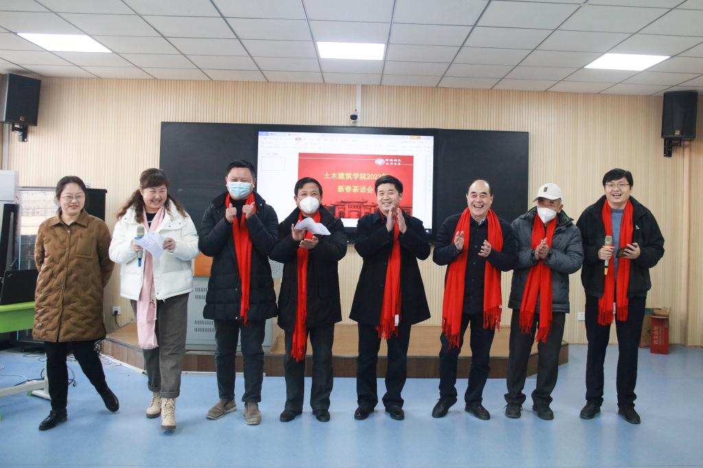 茶话会上,院长岳建伟教授从专业和学科建设、人才队伍建设、科学研究、学生培养、软硬件设施、校友工作、党建等多个方面,全面总结了学院2022年的工作,充分肯定了过去一年广大教职工所取得的成绩。他指出,土木工程、建筑学两个专业入选国家一流本科专业建设点;在第五轮学科评估中,土木工程学科排名大幅上升。这些是学院继2021年获批建筑学一级学科硕士点之后,在专业和学科建设方面取得的新突破。接着,他从党建引领、发展思路、高层次人才引进、学科突破发展、实验室和平台建设、学生培养等8个方面,谋划了学院2023年的重点任务,明确了今后工作的努力方向。他希望,在新的一年,学院上下踔厉奋发、团结奋斗,攻坚克难、抢抓机遇,落实立德树人根本任务,推动学院各项事业再上新台阶。