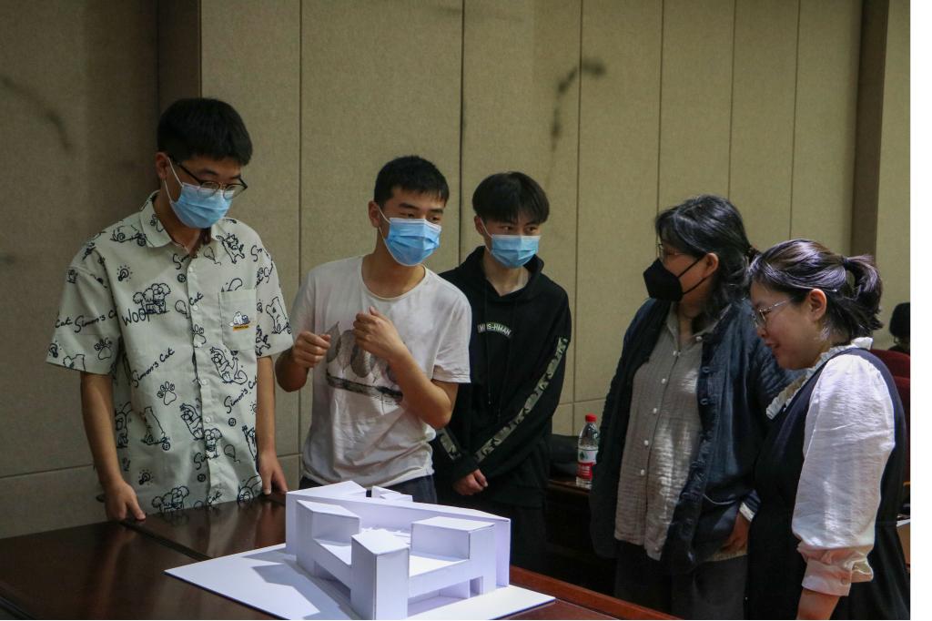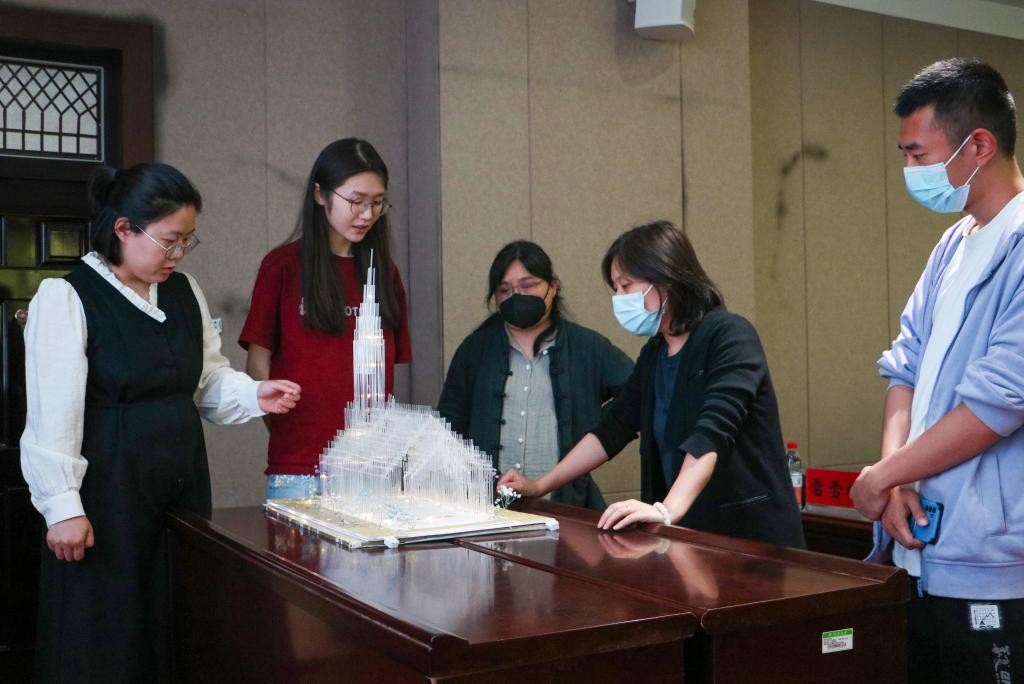 在结构报告厅举办建筑模型设计大赛,专业教师张帆、史学民、雷雪梅担任评委。