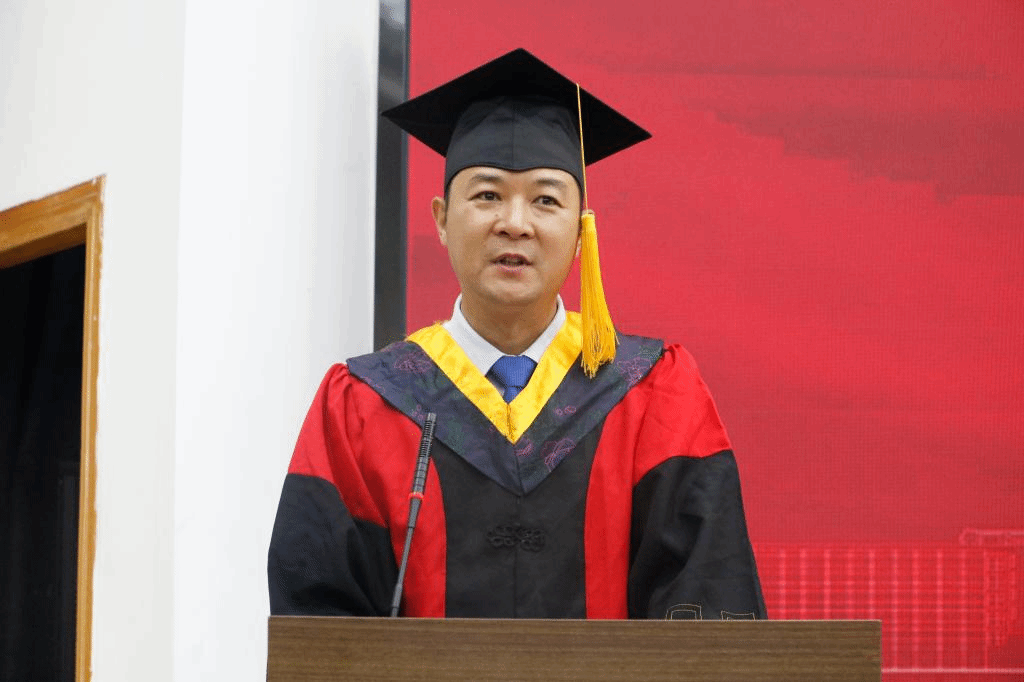 南晗代表学院向2023届全体毕业生表示最热烈的祝贺和最美好的祝愿!向为学生成长成才付出辛勤汗水的各位老师表示崇高的敬意!向守候在家乡的同学们的父母表示亲切的问候!毕业是对大学生涯的总结,毕业是职业人生的开始。他希望同学们勤于学习,养成终身学习的习惯,做到学以致用。在面对人生逆境和挫折时,能够保持乐观的心态,直面应对。作为新时代的青年大学生,要扛起时代赋予大家的历史责任,在全面实现中华民族伟大复兴的新征程中奉献青春韶华。四年师友昨日成追忆,千里之行今朝正起航。请大家谨记明德新民、止于至善的校训,践行“百折不挠、自强不息”的大学精神,乘风破浪会有时,直挂云帆济沧海。