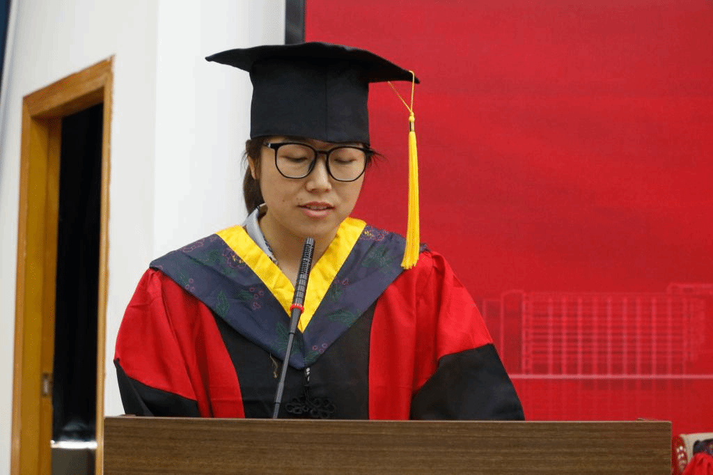 毕业典礼暨学位授予仪式现场,全体师生高唱中华人民共和国国歌。随后,原华宣读了麻豆传媒映画
