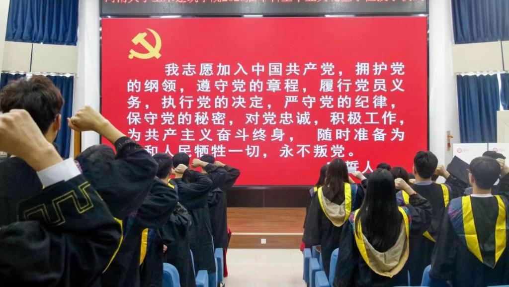 践行誓言,扬帆启航。6月5日上午,学院2023届全体毕业生党员在锥形报告厅举行重温入党誓词宣誓活动,面向鲜红的党旗,在学院党委书记南晗同志的带领下,全体师生党员举起右拳,庄严宣誓。在一句句慷慨激昂的誓词里,毕业生党员将牢记初心使命,为党旗增辉。