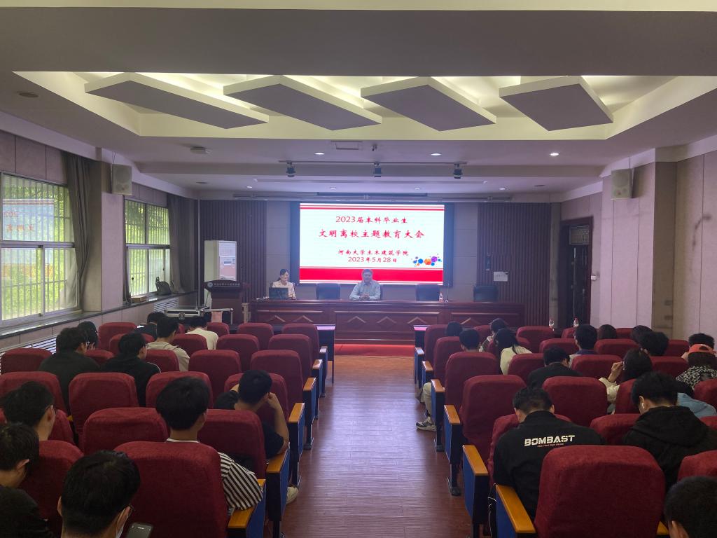 年级大会,强化教育。5月28日上午,学院在学术报告厅召开2023届毕业生年级大会,加强毕业生离校教育,明确文明离校流程。学院党委副书记赵艳忠和毕业班辅导员魏森杰、李杨参加了会议。