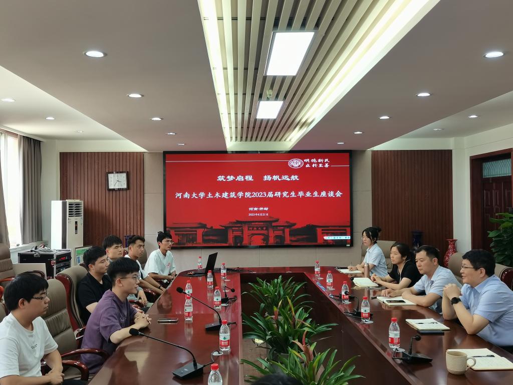 召开2023届研究生毕业生座谈会,学院党委书记南晗,学院执行院长张建伟,副院长原华,研究生辅导员许鸽龙,来自土木工程、设计学和土木水利(专硕)等专业的14名2023届研究生毕业生代表,参加了座谈会。座谈会由学院党委副书记赵艳忠主持。