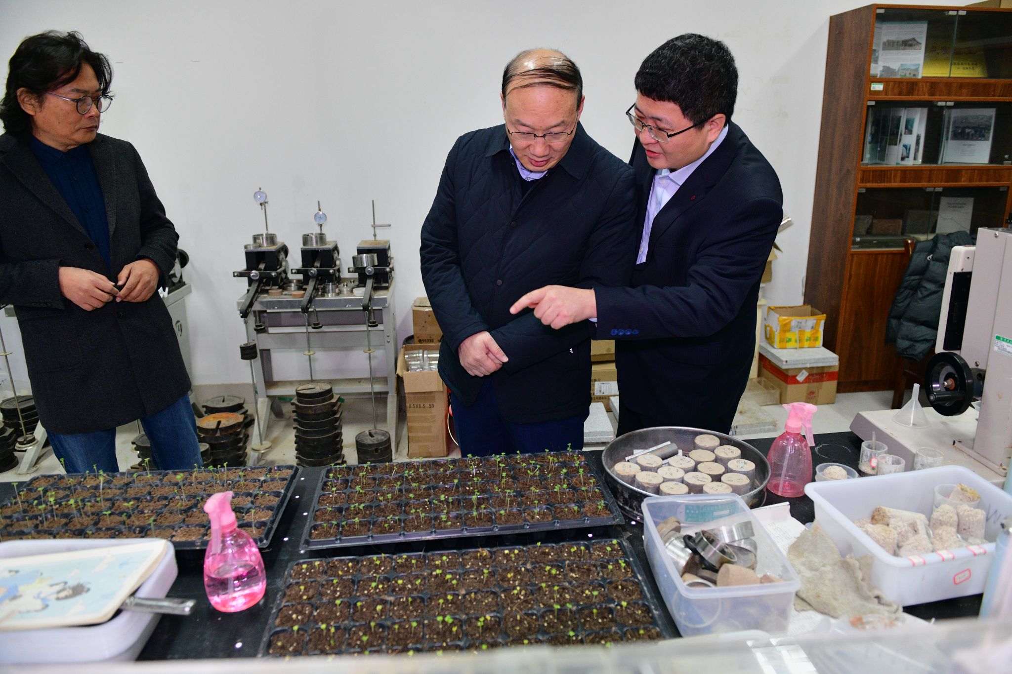 座谈会前,张锁江一行实地考察了结构实验室、建筑学展厅和微生物岩土实验室,详细了解学院基础设施和研究进展。