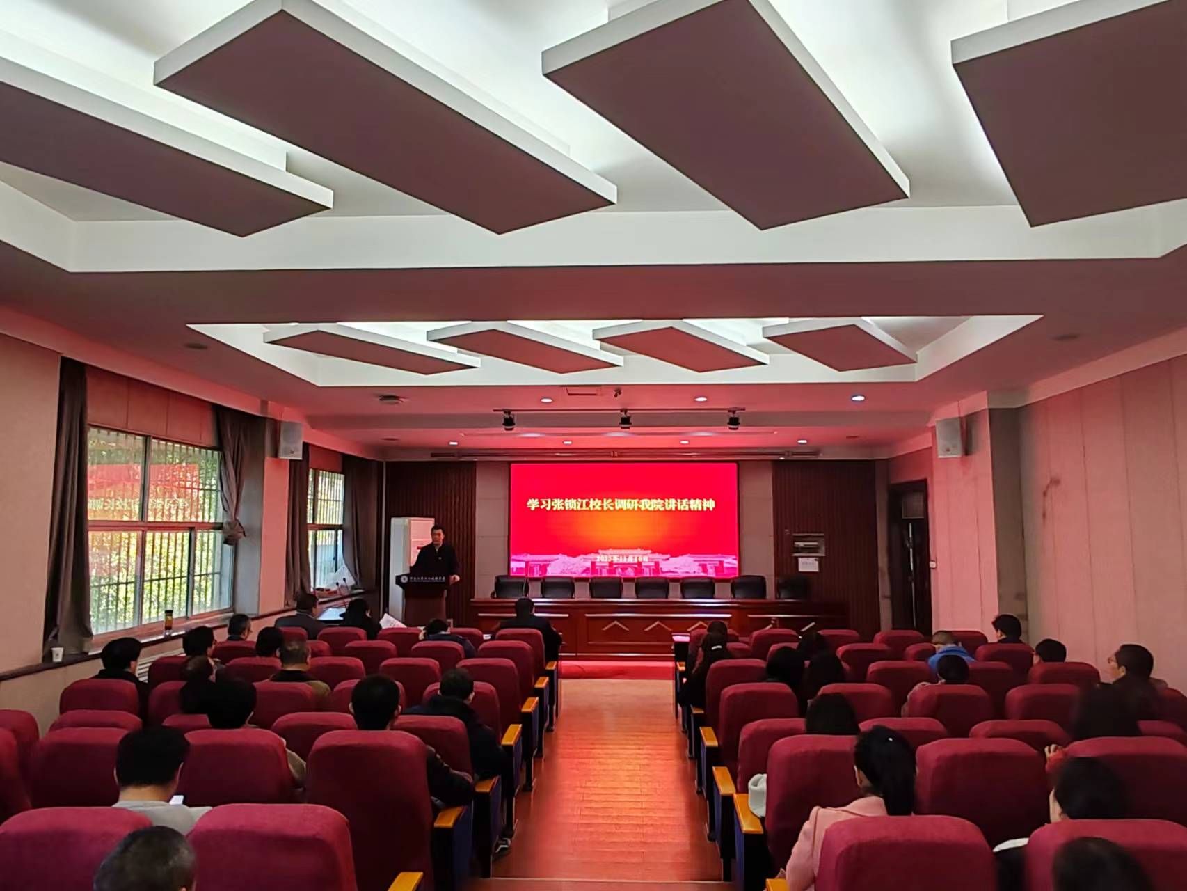 南晗首先介绍了校长张锁江来学院调研的具体情况,原原本本的传达了校长在调研座谈会上的讲话。