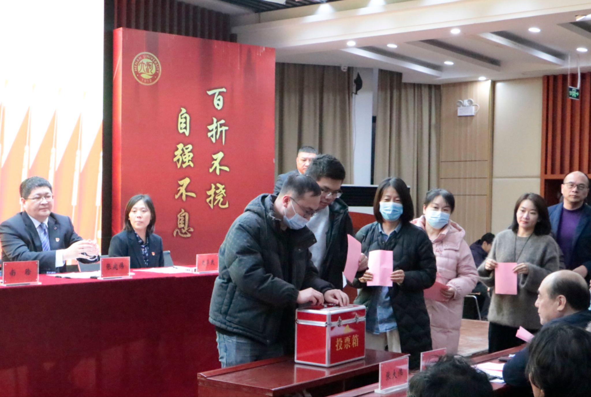 大会在庄严的国际歌中落下帷幕。新一届党委在学院204会议室召开第一次全体会议,会议选举南晗同志为党委书记,张建伟同志为党委副书记。南晗主持会议,会议明确了各位委员工作分工,并对委员们提出希望和要求,希望委员们勤政务实,敢于担当,不辜负全院师生的重托和厚望。