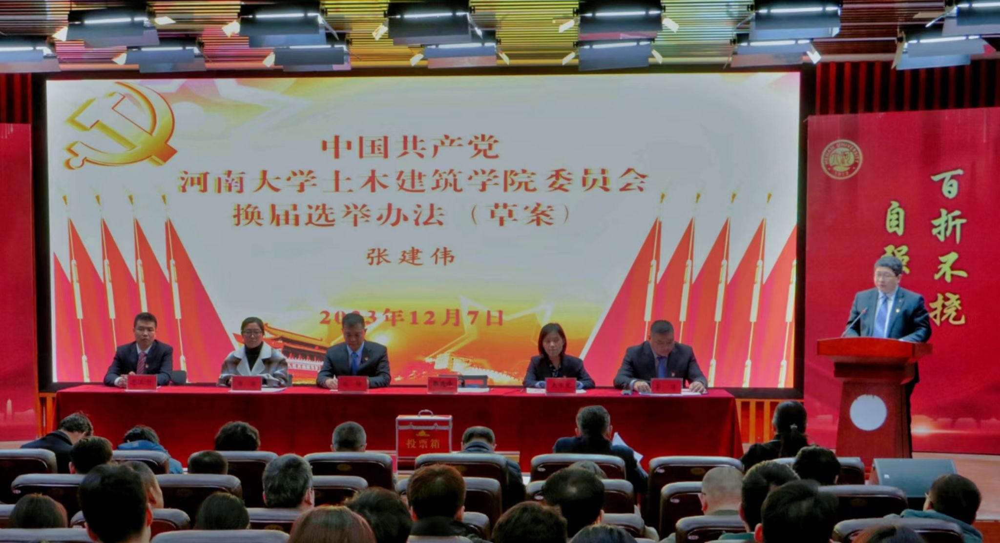 委员会换届选举党员大会在圆形报告厅举行。学院全体党员参会,党外人士代表列席会议,会议由学院副院长李锋主持。