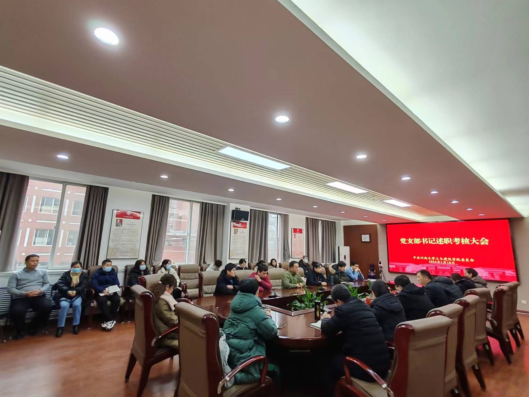 召开2023年度党支部书记述职评议考核大会。学院全体党委委员、班子成员、教师和学生党支部书记参加会议,会议由党委书记南晗主持。