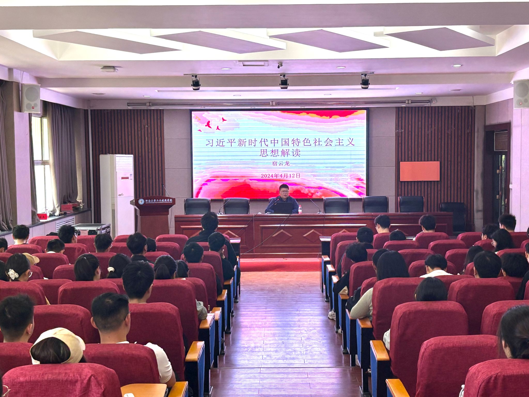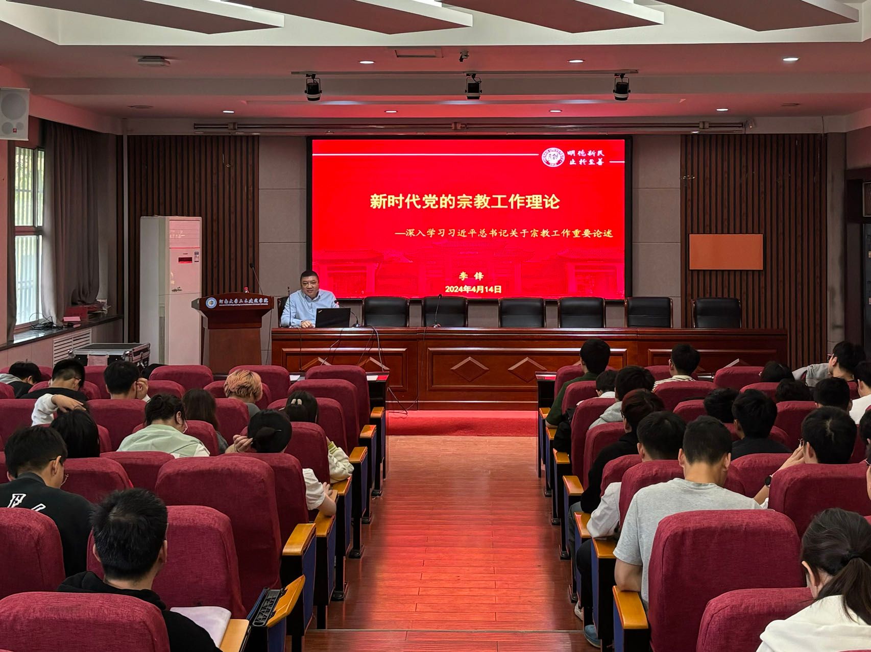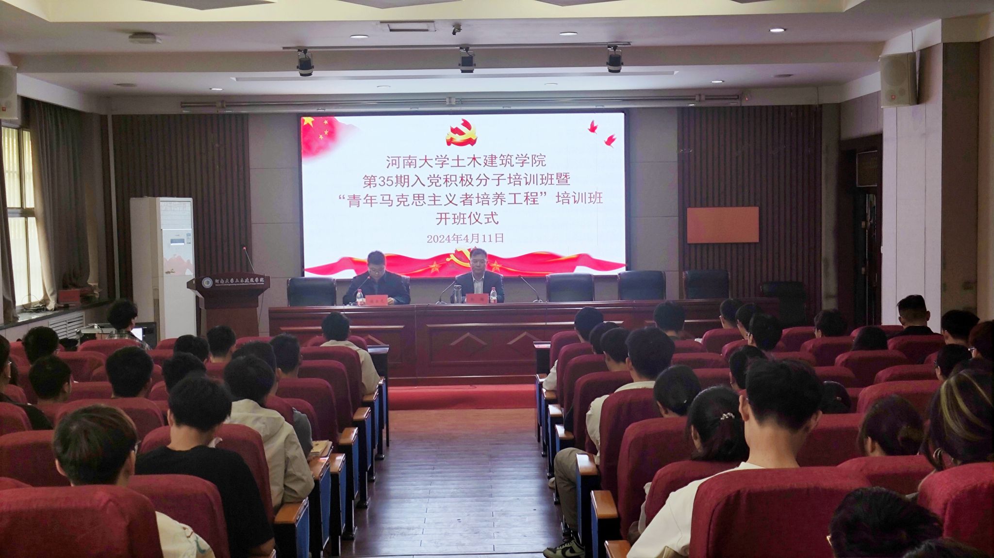 4月11日下午举行了开班仪式。学院党委书记南晗出席大会。学院124名入党积极分子与25名“青马班”学员参加仪式。仪式由学院学生工作负责人、培训班班主任宿云龙主持。