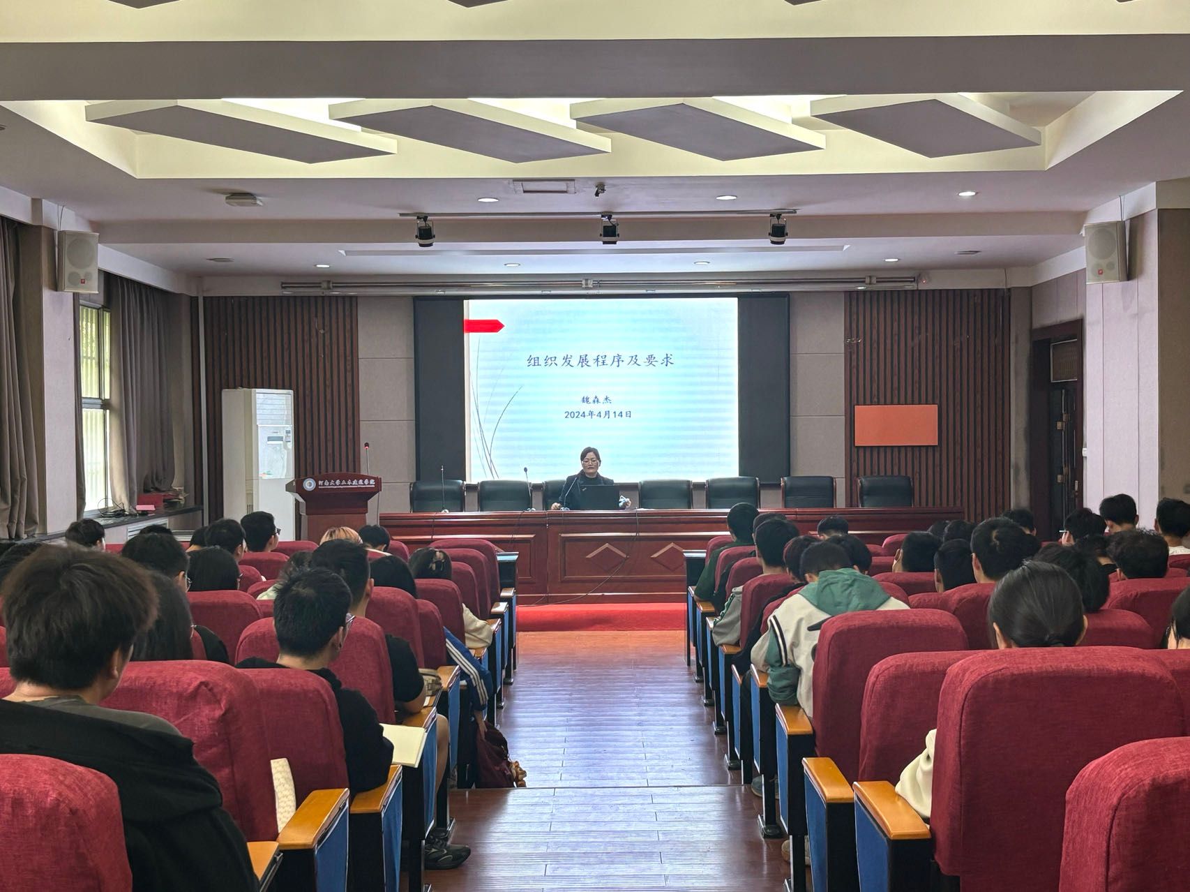 开班仪式在嘹亮的国歌声中拉开帷幕。宿云龙宣布开班。他对本次培训班的目的、时间、内容、教学方式作了详细安排,并强调了本次培训班的纪律要求。学员代表2023级研究生张云飞同学发言,他表示全体学员要通过培训,进一步坚定共产主义理想信念,立为党之志,修为党之心,行为党之实,为党和人民的事业贡献更大的力量,为实现中国梦的伟大目标而不懈努力!