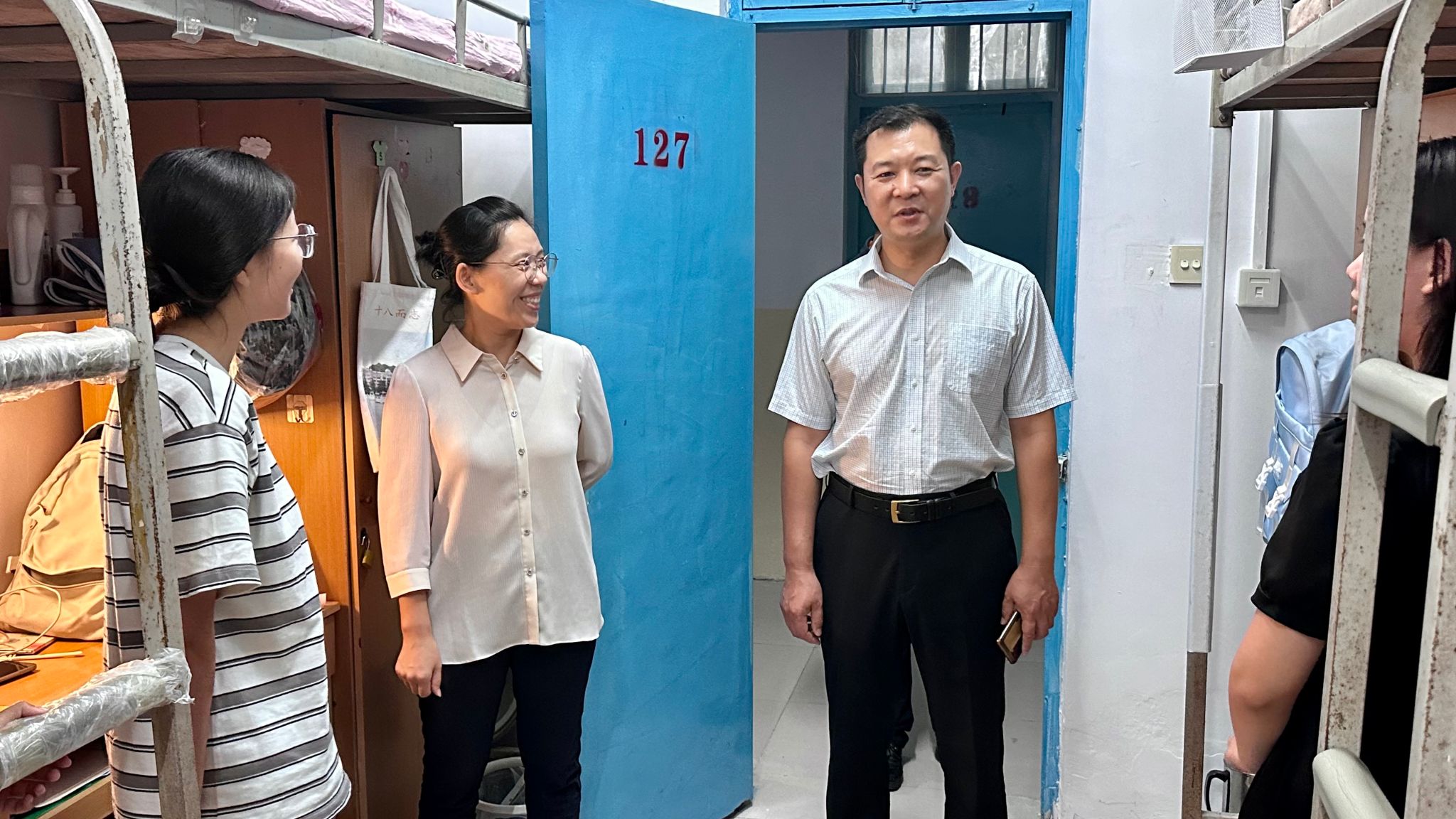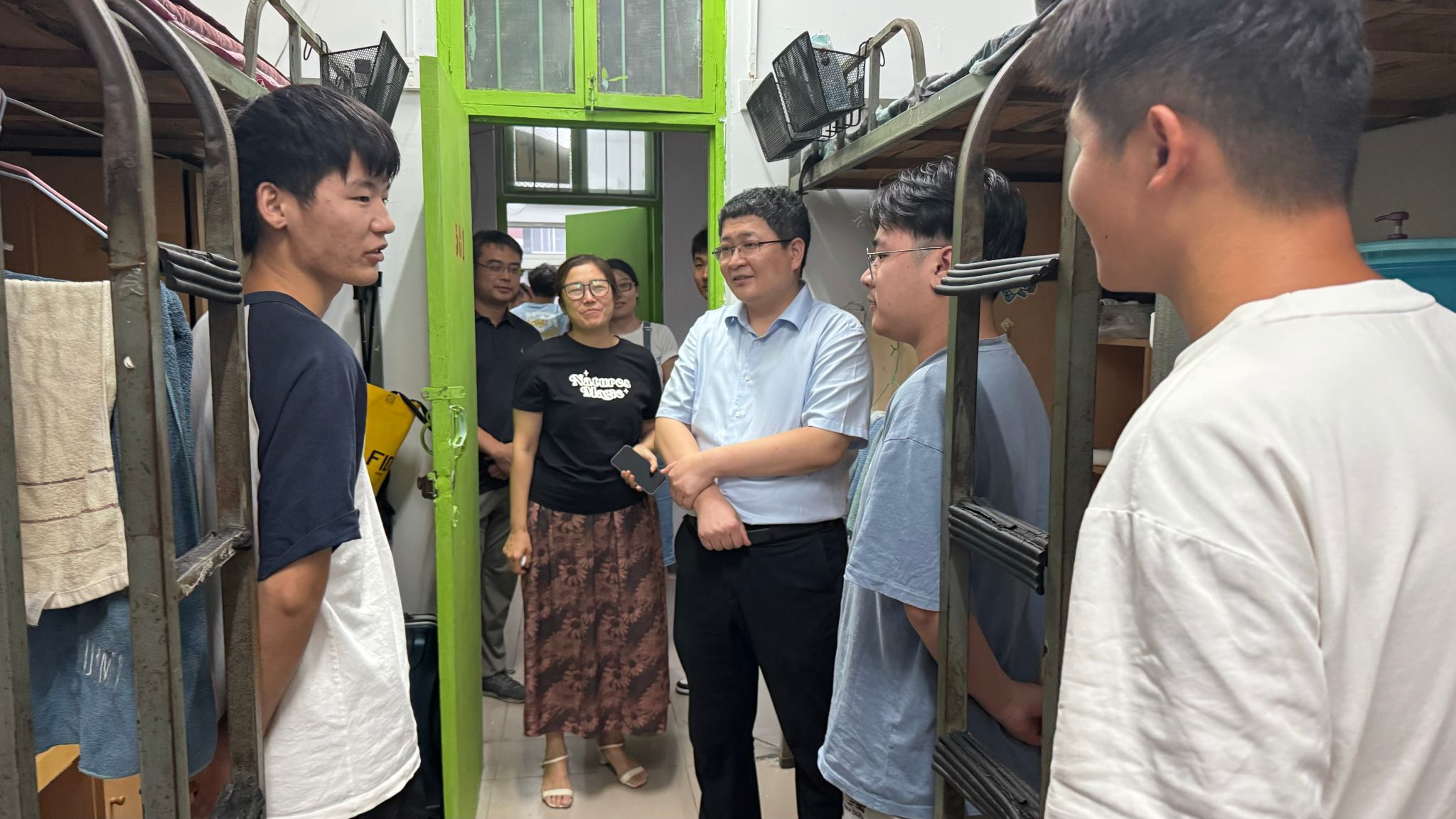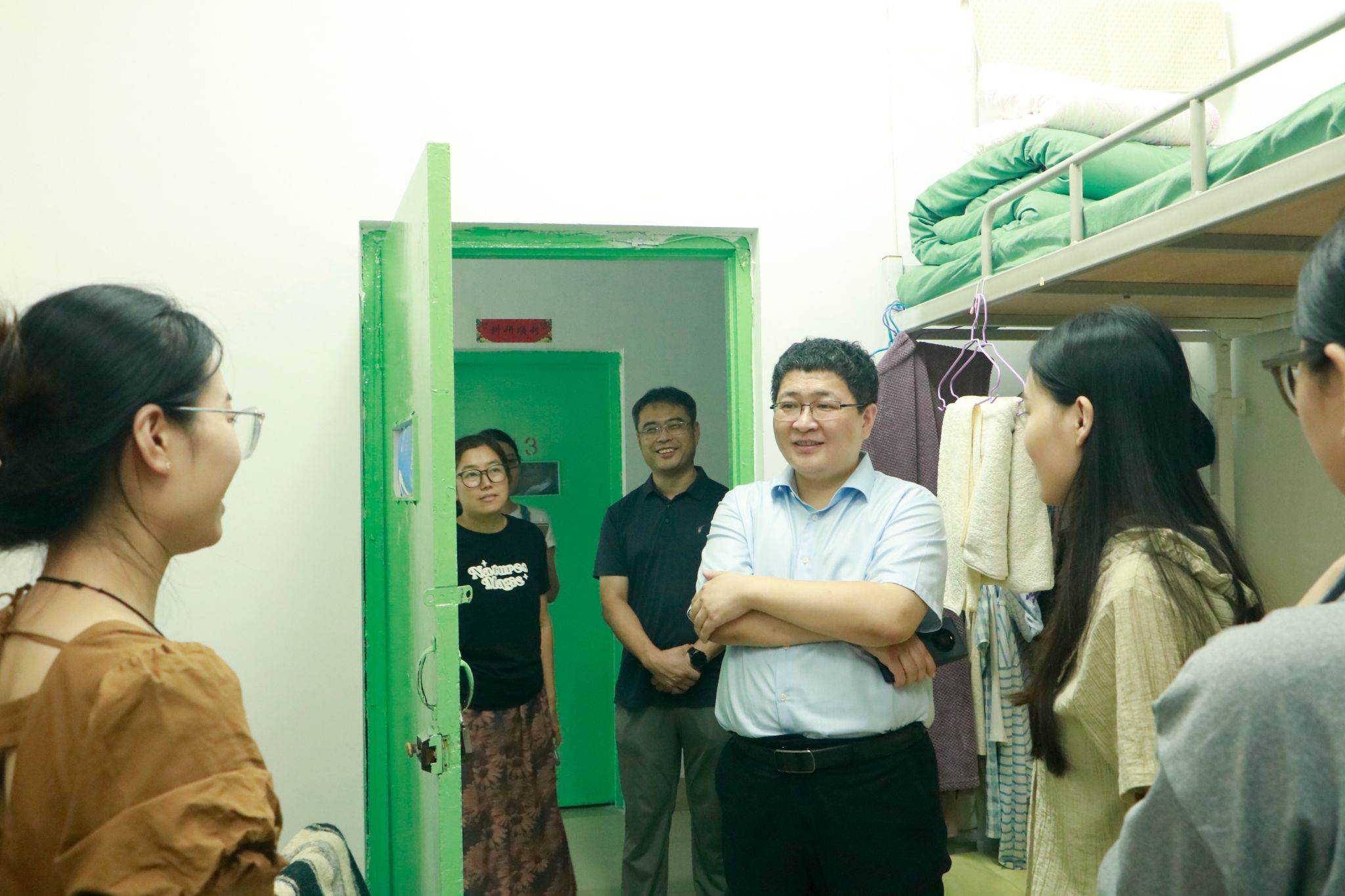 为更好地了解学院2024级新生在校住宿和生活情况,引导学生尽快适应大学的新生活新环境,9月6日晚上,学院党委书记南晗、执行院长张建伟分别带领学院领导班子成员到2024级本科和研究生宿舍进行走访慰问。