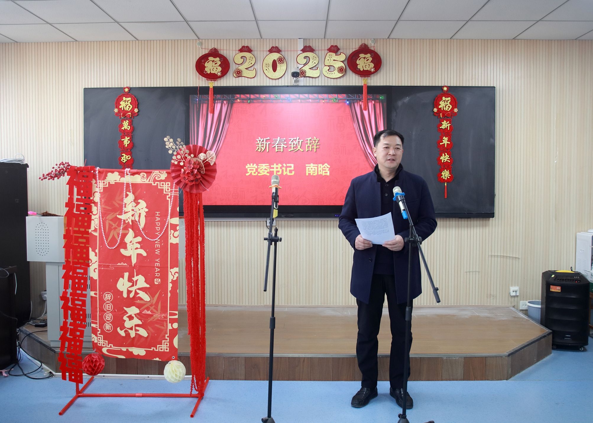学院党委书记南晗首先致辞。他对学院一年来在学校党委和行政的正确领导下踔厉奋发、团结奋斗,取得的可喜的成绩表示祝贺,对老师们一年来的辛勤付出表示衷心的感谢,并向学院全体师生致以新春的问候和美好的祝福。