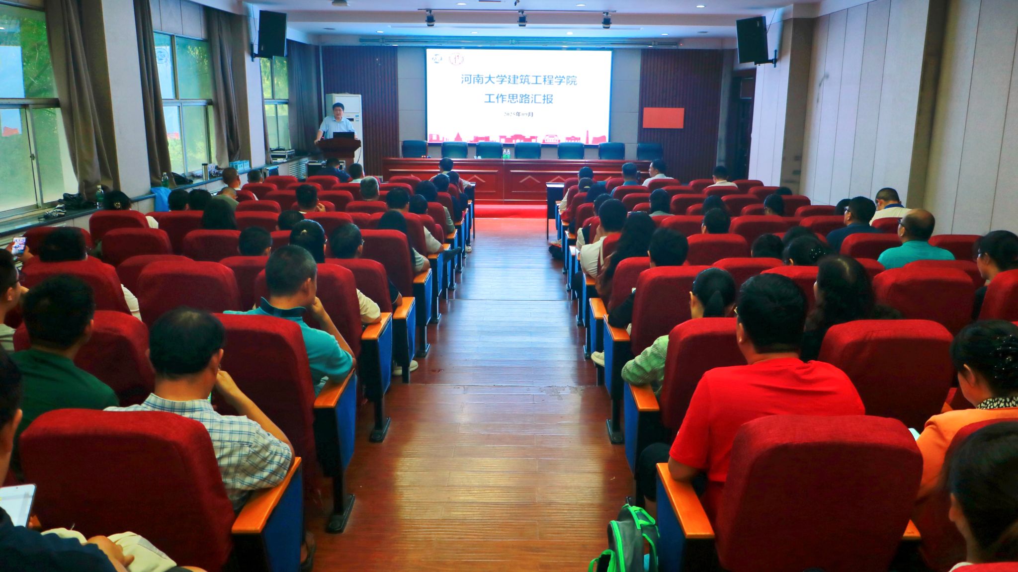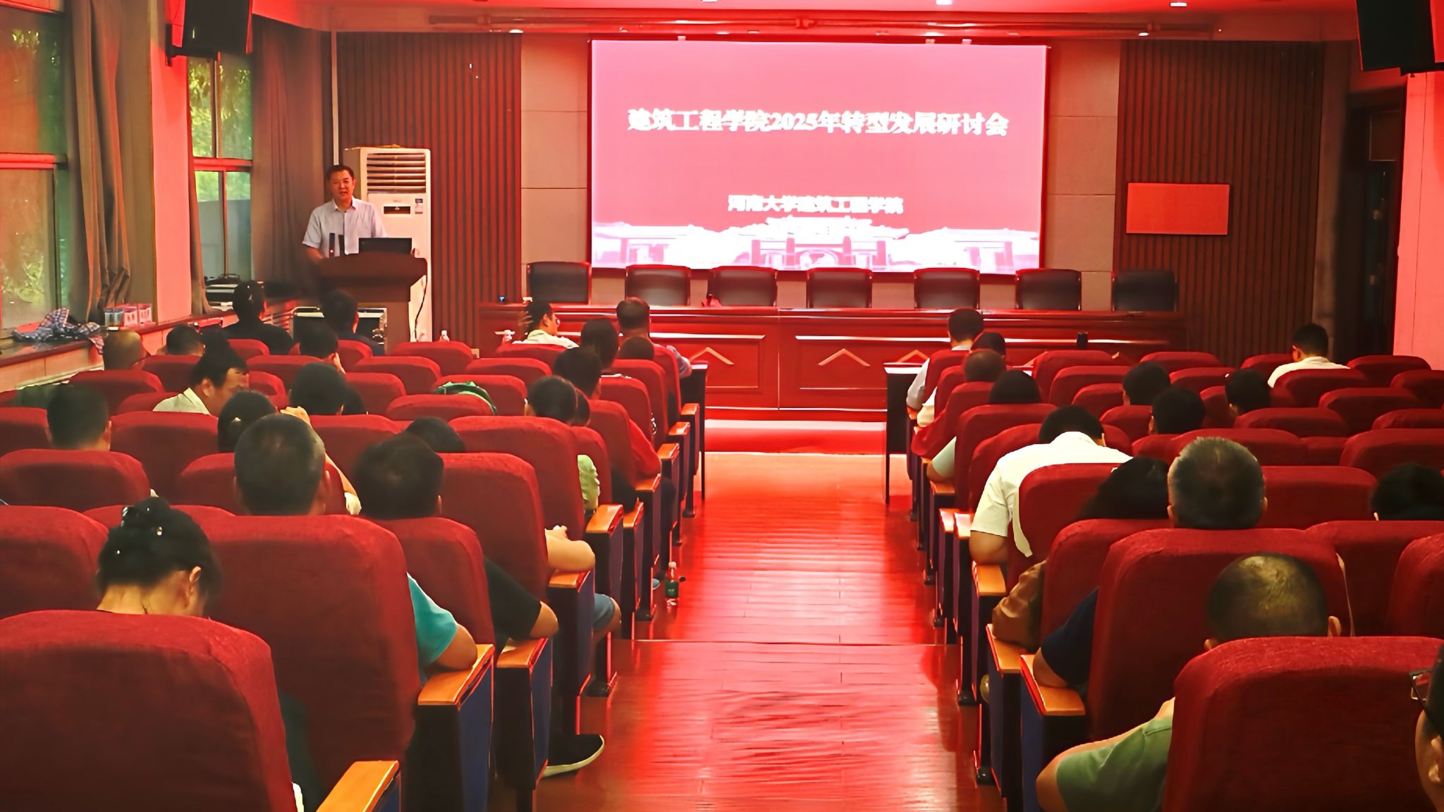 在结构实验室二楼报告厅召开2025年转型发展研讨会。学院全体教职工参加会议。