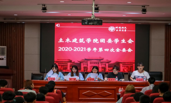 团委学生会于6月3日下午15:30在结构实验楼二楼报告厅举行2020-2021学年第四次全委会。出席会议的有团委书记徐贵香、团委学生会主席团成员、团委学生会各部门部长及委员,本次会议由团委学生会主席温皓然主持。