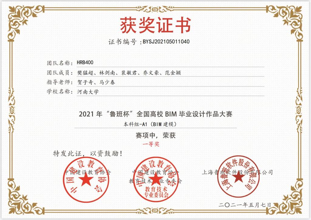 In order to cultivate intelligent construction talents based on BIM Technology, stimulate college students' enthusiasm for practical innovation ability and professional knowledge, deepen their mastery of professional skills and new industry technologies, and improve their employment and entrepreneurial ability, the project is sponsored by China Construction Education Association and undertaken by Chongqing Jiaotong University, The 2021 "Luban Cup" BIM graduation design competition co sponsored by Shanghai Luban Software Co., Ltd. has come to a successful conclusion. This competition covers the whole country. Among more than 600 groups of effective works, our 2018 team HRB400 stands out and wins the first prize in a and the third prize in B. The team is guided by Mr. He Ziqi and Mr. Ma Shaochun, with fan Jinying as the team leader and Lin Jiannan, Qiao Wenhao, fan Mengchao and Pei Minjun as the team members. Another team, the star team, won the second prize in event a.