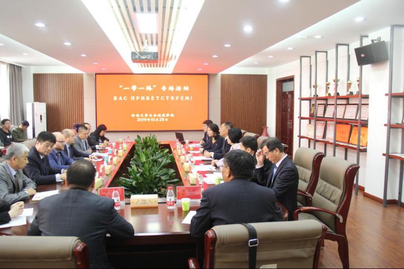 On October 28, 2019, the vice president of Moscow State University of Architecture Andrei Pstafgar, who was invited by our school to participate in the special event of "One Belt One Road" international scientific and technological cooperation, and 8 people came to our school for academic exchanges And investigation. Member of the Standing Committee of the Party Committee and Vice President Sun Junjian met with the visitors in the 204 conference room of the college. Mao Liqun, Director of the International Cooperation and Exchange Division of the International Cooperation and Exchange Office, relevant persons in charge of our college and teacher representatives attended the discussion.