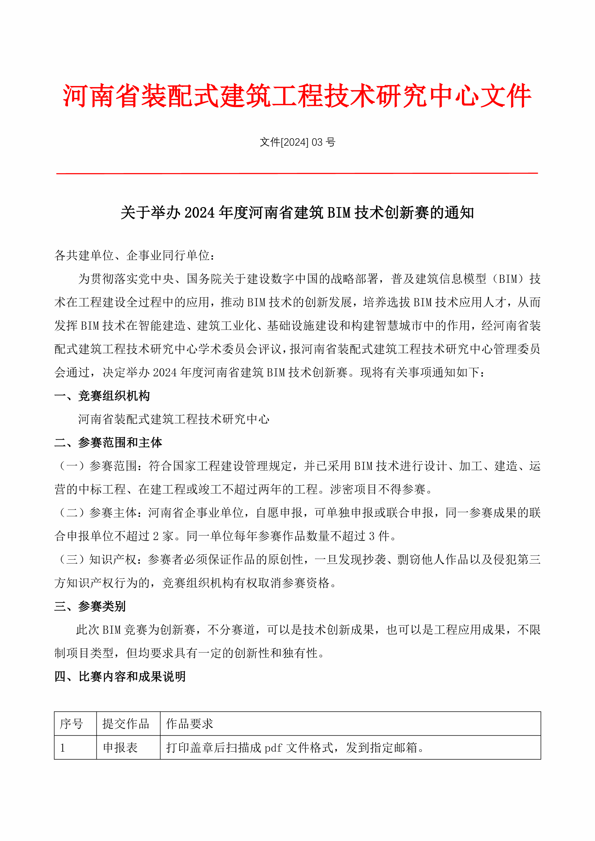 关于举办2024年度河南省建筑BIM技术创新赛的通知