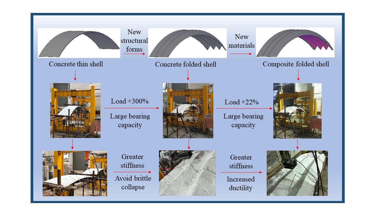 钢与空间结构研究所杜文风课题组在工程类期刊 Thin-walled Structures在线发表了题为:Experimental investigation of innovative composite folded thin cylindrical concrete shell structure的研究论文。