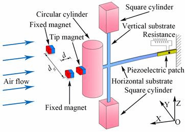 自然界中蕴含着丰富的风能,利用风致振动能量收集器将风能转换为电能,实现传感器网络中节点无线传感器、控制器的自供能,具有重要的实际意义与应用前景。实际环境中风速往往不稳定并在一个较宽的范围内变化,会导致传统的线性风致振动能量收集器很难保障高效的风能收集转换效率。如何使风致振动能量收集器在较宽的风速范围内保持较高的能量转换效率显得至关重要。周志勇副教授团队针对变速弱风环境下的风能收集技术难题开展研究,利用涡激振动和颤振的失稳机理,结合非线性多稳态技术,设计出了一种多稳态风能收集结构。通过理论和实验研究发现,所提出的多稳态风能收集结构通过引入磁引力可以表现出双稳态和双稳态特性。通过调整磁引力具有三稳态特性的风能收集结构,在风荷载作用下可以在任意两个平衡位置之间发生阱间跳跃。这不仅能够更加容易地实现密集的阱间跳跃,而且在发生阱间跳跃时还保持较大的振幅,从而在变速弱风环境下具有较高的风能的收集效率。