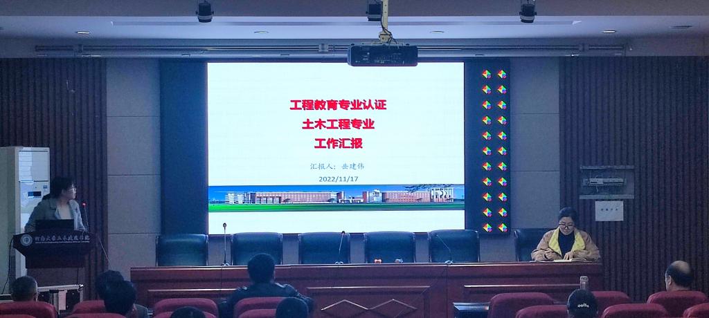 建筑工程系系主任宋晓展示了向土木工程专业认证专家汇报的PPT,地下空间工程系系主任边汉亮对土木工程专业认证其他工作的进度以及存在的问题、后续需解决的事项进行了汇报。