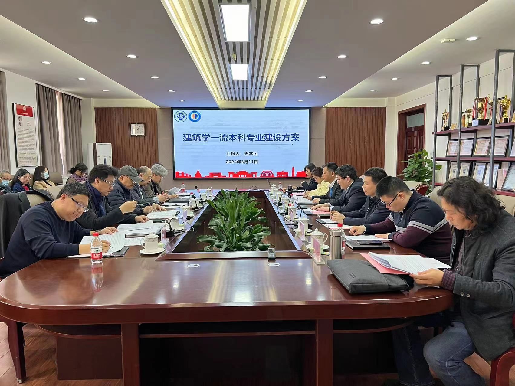 的学科建设现状和本次河南省一流专业建设的背景和要求,表达了学校对学院学科建设的重视与支持。学院副院长史学民作为本科专业建设方案汇报人,从专业现状、建设目标、建设内容、资金预算等方面对建筑学一流专业建设情况及2023-2026年度建设方案进行了详细汇报。论证专家听取汇报,审阅建筑学专业建设方案和现行人才培养方案后,就建筑学专业建设方案中专业建设目标、专业特色建设、高层次人才引进、团队建设、课程体系、教学交流、绩效指标等方面进行质询论证。