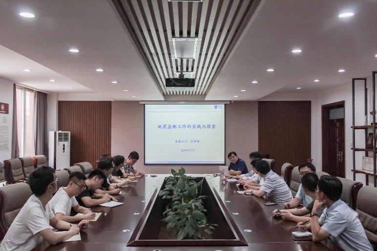 罗新恒教授级高工首先简要介绍了珠海市泰德企业有限公司的基本情况。该公司现拥有智能化的地震监测及预警系统、井下地球物理综合综合观测系统、海洋地球物理观测系统和地震监测业务管理平台。之后,讲述了地震的危害及地震监测的发展方向等,认为地震监测要向深井地震综合观测系统、海洋地球物理观测系统等方面发展,并提到将物联网、大数据、云计算、人工智能与地震监测相结合,可实现人类与物理系统的整合。最后,研讨环节,参会老师和罗新恒教授级高工积极展开交流,岳建伟院长就地震应急救援过程中,结构裂缝及位移的观测技术与罗工进行了深入讨论。