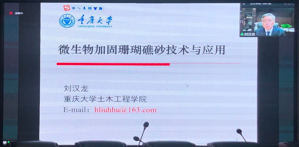 的关心与帮助表示感谢,并详细介绍了刘汉龙教授的个人基本情况。刘汉龙教授报告题目为《微生物加固珊瑚礁砂技术与应用》,从国家战略需求、关键技术、原理等方面详细阐述了微生物加固技术的研究进展及应用;重点介绍了微生物加固钙质砂静力特征、动力特征及现场试验,深入浅出的为麻豆传媒映画