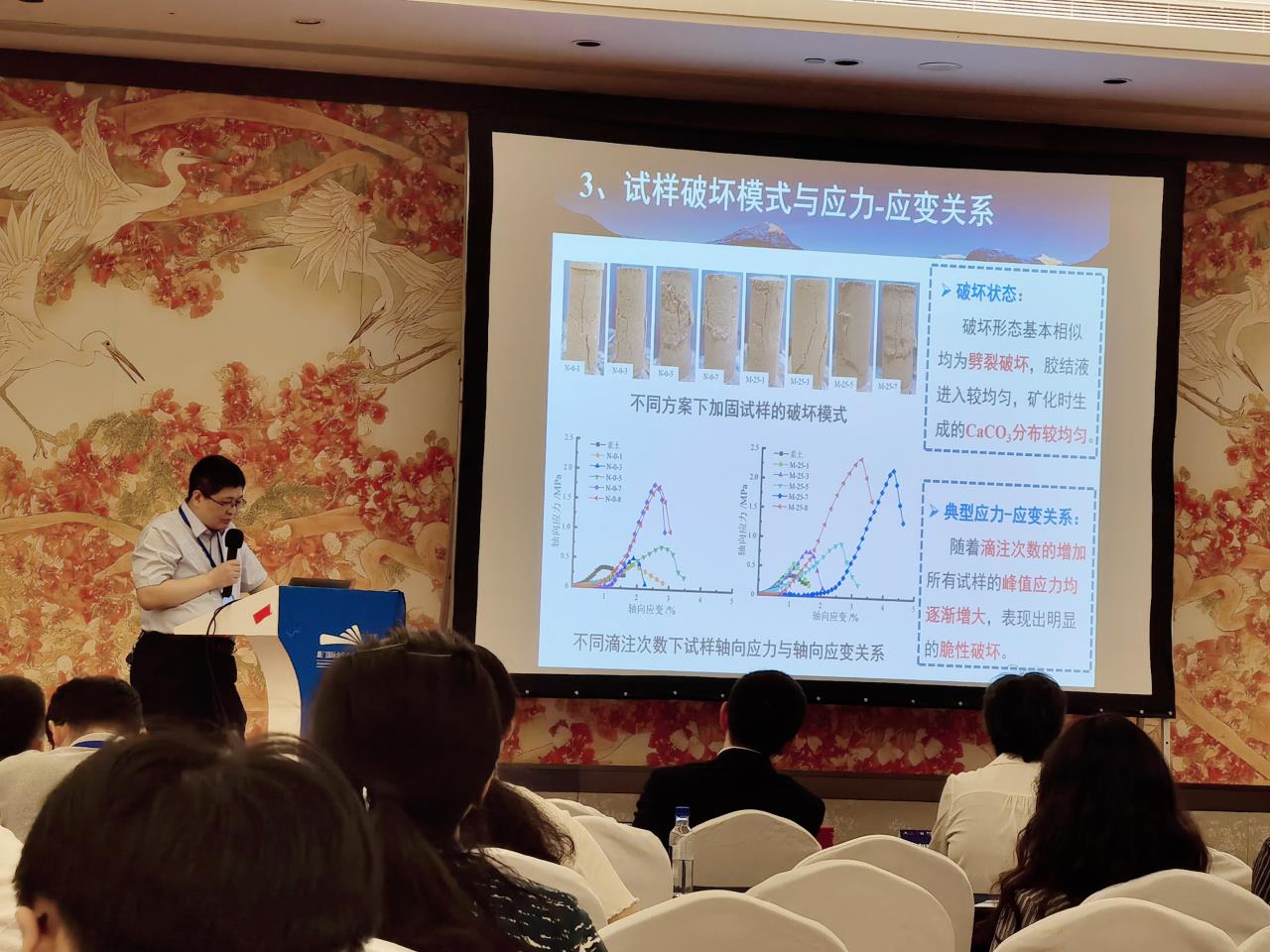 张建伟教授作为全国微生物岩土与材料工程学术委员会委员,在会上作了题为《紫外诱变产脲酶菌株加固粉土的试验研究》的特邀报告,并作为主持人进行了分会场的会议主持。岳建伟教授作了题为《基于碳化原理的遗址土性能改良的试验研究》的特邀报告。边汉亮副教授与徐向春博士作为中国岩石力学与工程学会环境岩土工程分会青年委员,分别作了题为《EICP修复重金属污染土的环境稳定性研究》及《大豆脲酶固化铅、锌污染土效果试验研究》的主题报告,展示了麻豆传媒映画