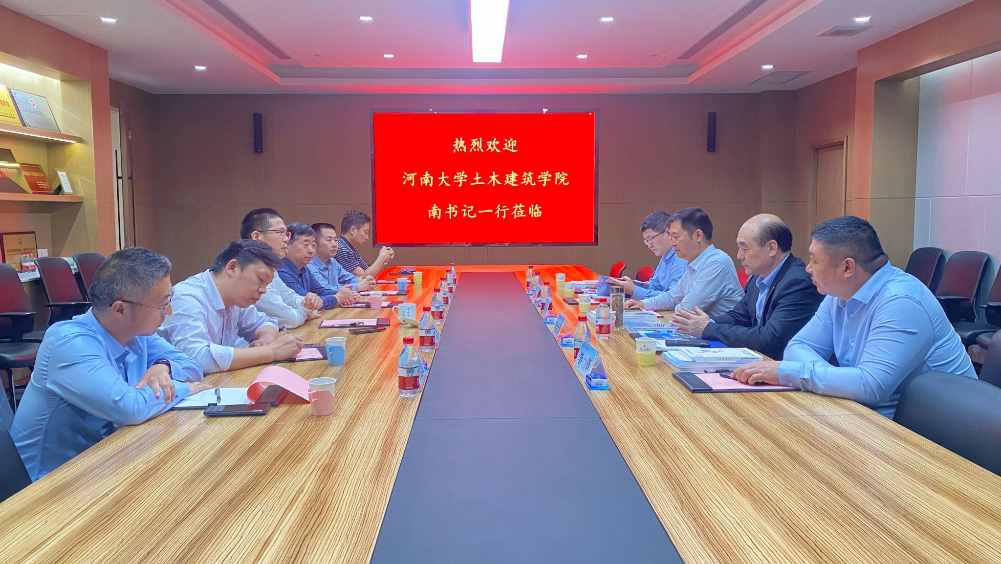 南晗一行与河南省第二建设集团有限公司总经理1994级校友祝建明、副总经理2001级校友燕中、总工程师兼人力资源总监苏群山、民用事业部总经理李陆军、人力资源部部长夏卫新、技术中心主任吴远超等进行座谈。祝建明对学院领导的到访表示热烈欢迎,他介绍了公司近况和公司加强核心竞争力、产业链拉伸、稳健发展等保持良性循环的举措,介绍了目前正在施工的麻豆传媒映画