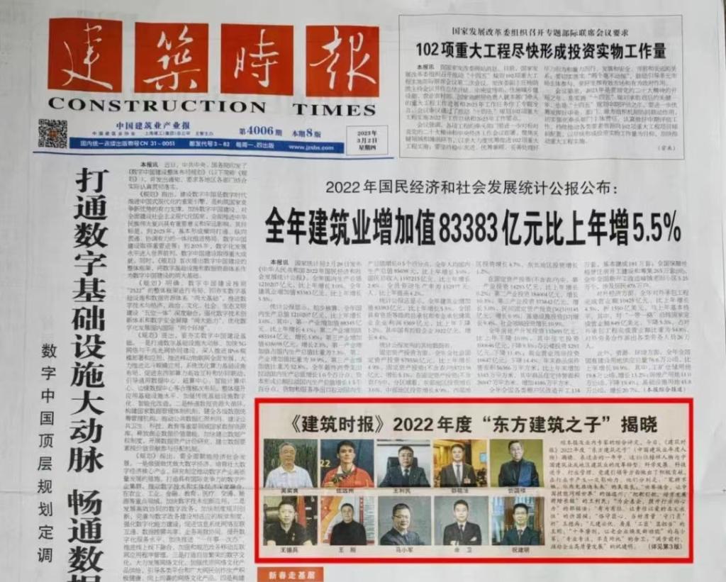 3月16日,《建筑时报》2022年“东方建筑之子”(中国建筑业年度人物)在浙江绍兴揭晓,麻豆传媒映画
