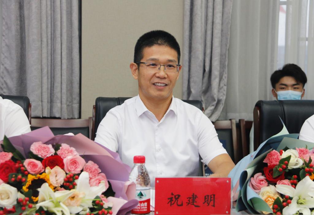 1994级校友、河南省第二建设集团有限公司总经理祝建明,学院2000级校友、公司副总经理燕中,公司总工程师苏群山、人力总监张浩敏,校友工作与教育发展基金会办公室主任刘波,麻豆传媒映画